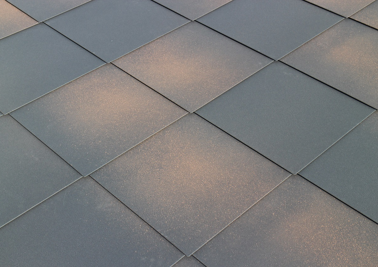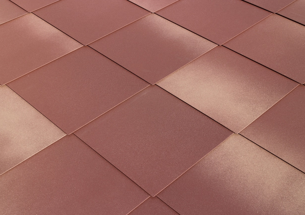 「菱葺」は一枚ずつの本はぜ加工で、熱膨張による伸縮にも安心して使用していただけます。一文字葺きと違った現代的なデザインとなり、外壁や斜線制限の急勾配屋根にお勧めです。