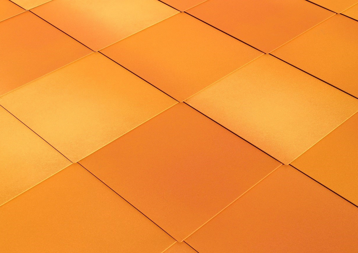 菱型の意匠は現代建築、和風建築、いずれにの建物にも調和します。また、一枚ずつ独立した本ハゼ加工の材料は、熱膨張を的確に吸収します。