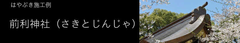 愛知県丹羽郡扶桑町にある前利神社は、創建年代は不詳ですが延喜式神名帳に記されており今から約1300年以前に建てられた古い神社です。昭和13年3月12日県社に昇格された由緒ある格式の高い神社です。この度、本殿及び拝殿の葺替え工事が行われ、「はやぶき銅板」が採用されました