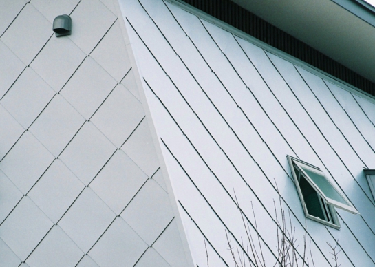 大阪府高槻市に建設された社会福祉施設の外壁に「菱葺き455型」が採用されました。材料はガルバリウム鋼板生地 板厚0.4mmを使用し、現代的な意匠の建築となっています。