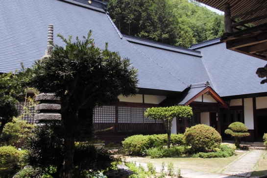 玉雲寺は近くに43mの落差を誇る琴滝があり、滝見寺と呼ばれている京丹波町の名勝です。現在の本堂と庫裏は天正8年(1580年)、前年に兵火で消失した建物を明智光秀が再興したものです。茅葺きの屋根の上に亜鉛メッキ鋼板で葺かれていた屋根は、さらにカラーステンレスの一文字葺きで改修されました