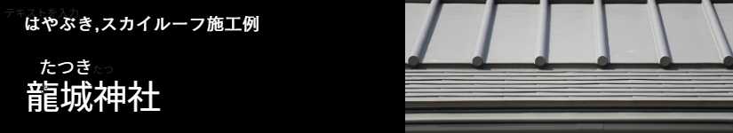 龍城神社(たつきじんじゃ)は、徳川家康公が生まれた岡崎城本丸に鎮座する神社で、家康公が戦乱の世を鎮め、天下統一をなし、万民和楽の大業を達成した偉業をたたえ、岡崎城内に奉祀されたものです。この度社務所および斎館が完成し、屋根は「はやぶき」とスカイルーフ嵌合瓦棒が使用されました