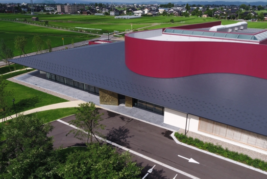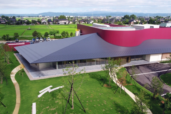 2017年4月、スズでできた曲がる器「KAGO」シリーズなどで全国的知名度を誇る「能作」の新社屋と新工場が富山県高岡市に建設され、この屋根に一文字「はやぶき」が採用されました。1916年に創業した「能作」は全国の有名百貨店に直営店を展開する有名鋳物メーカーです。工場、オフィス、カフェ、ショップ、体験工房からなる約4,000坪の施設のテーマは「産業観光」で、工場と地域の魅力を伝える観光施設をひとつ屋根の下に集めた施設です