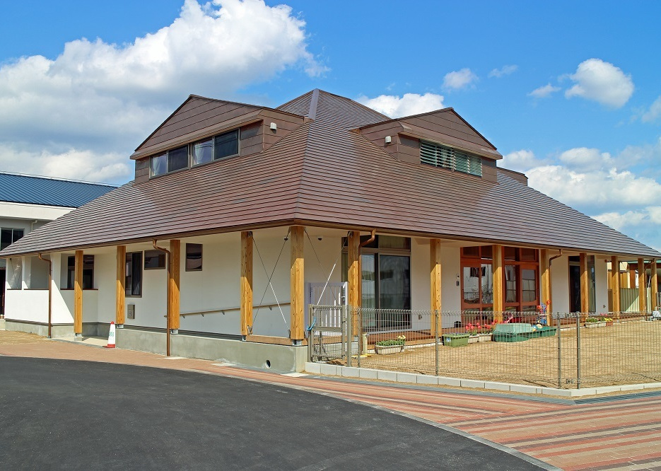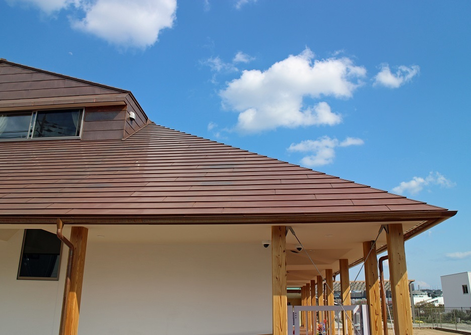 令和2年3月神戸市垂水区舞多聞に建設された「あしたば保育園」にシャダンルーフ12が採用されました。素材は銅板0.4tが使用されシャープで重厚な屋根に仕上がっています。