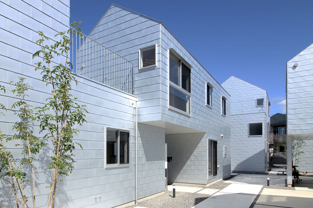 広島市北部に建設されたCHRONOS DWELLは現代的な長屋をイメージさせるファミリータイプの賃貸アパートです。この屋根及び壁に「はやぶき」が採用されました。「CHRONOS DWELL」は2019年のグッドデザイン賞と日本建築家協会 中国建築大賞 特別賞を受賞されました。