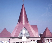 It has been told for many years that holes appear in copper sheets when they corrode in acid rain. However, this phenomenon is limited to copper gutters on tiled roofs and parts where tiles and copper sheets touch in thatched-style roofs. It is thought that the reason for this is not inly rainwater concentrated in the center of tiles but also a height difference; the oxidized film that forms is detached and a new film is not formed (erosion). (Refer to photo 1) Further, there is thought to be a large effect caused by elution from the tiles and glazes. If this copper corrosion is due to acid rain, roofs made of straight slating with whole copper sheets should also have holes. Photo 2 is of the rooftop structure of the copper sheet roof of the central public hall in Osaka, renewed in 2002. The roof is 80 years old, having been laid in 1918 with a thickness of 0.35mm. It is surrounded by stable natural greenery and was not corroded at all. Thus, roofs entirely made of copper sheets do not undergo this hole-opening phenomenon. Based on this, it is thought that corrosion is due to usage rather than acid rain. Preventive measures for this include double-layered sheets where they touch tiles and assembly methods that increase the thickness of the sheets.