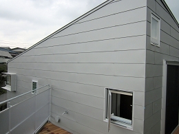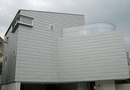 The newly built house in Takakuradai was completed in November 2011 in a quiet residential district in Suma ward, Kobe city. It featured galvalume steel sheets for Wall First. The sheets were made to order in a long shape and they created a modern silver appearance.