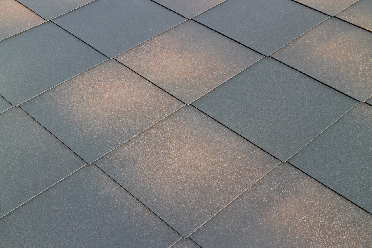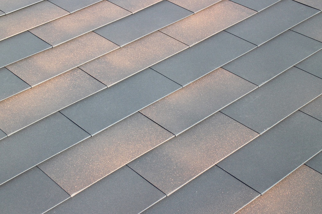 1.複数塗料の塗装により南欧風の窯変調意匠を金属屋根で実現しました。