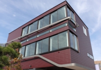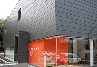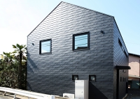 「かべいち」は壁専用として開発した一文字葺きで、壁面向けに意匠性と施工性を工夫した材料です。一枚ずつの独立した材料は熱膨張を的確に吸収し、開口部や窓部の施工もしやすい製品です。
