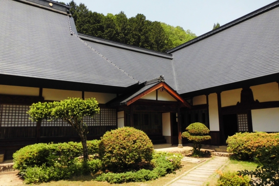 玉雲寺は近くに43mの落差を誇る琴滝があり、滝見寺と呼ばれている京丹波町の名勝です。現在の本堂と庫裏は天正8年(1580年)、前年に兵火で消失した建物を明智光秀が再興したものです。茅葺きの屋根の上に亜鉛メッキ鋼板で葺かれていた屋根は、さらにカラーステンレスの一文字葺きで改修されました