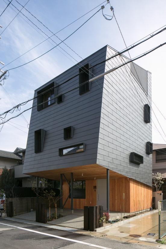 兵庫県西宮市の甲子園口に建設されたY邸はY's建築工房の所長のご自宅として建設されました。外壁正面の勾配面と他3面の幅を合わせるために特寸で製作いたしました。コーナー部はハゼ組によりきれいに施工されています。