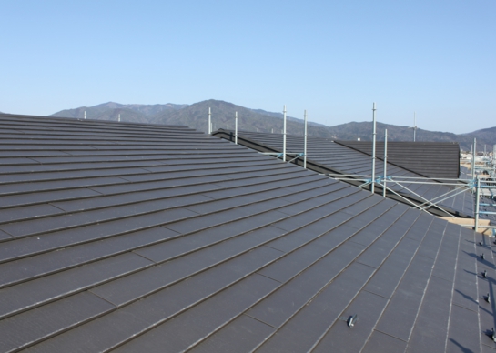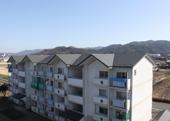 京都府亀岡市の府営穴川団地の屋根葺替工事に「シャダンルーフ20」が採用されました。既設屋根は約12年経過した石綿スレート瓦で、凍結や風雨により劣化が進んでいました。断熱バックアップ材を使用した通気工法による夏場の温度低減も採用の決め手となりました。夏も涼しく、美しくリフォームされた屋根は住民の皆様からも大変喜ばれています。