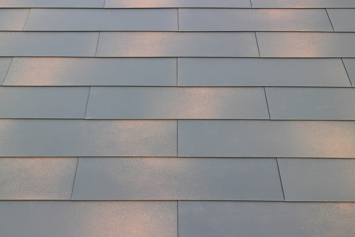 1.複数塗料の塗装により南欧風の窯変調意匠を金属屋根で実現しました。